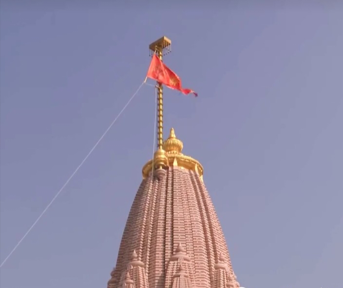 அயோத்தியில் கட்டப்பட்டுள்ள குழந்தை ராமன் கோவிலில் பிரதமர் நரேந்திர மோடி கோபுரத்தின் உச்சியில் உள்ள கொடி கம்பத்தில் காவி கொடியை ஏற்றி வைத்தார்...