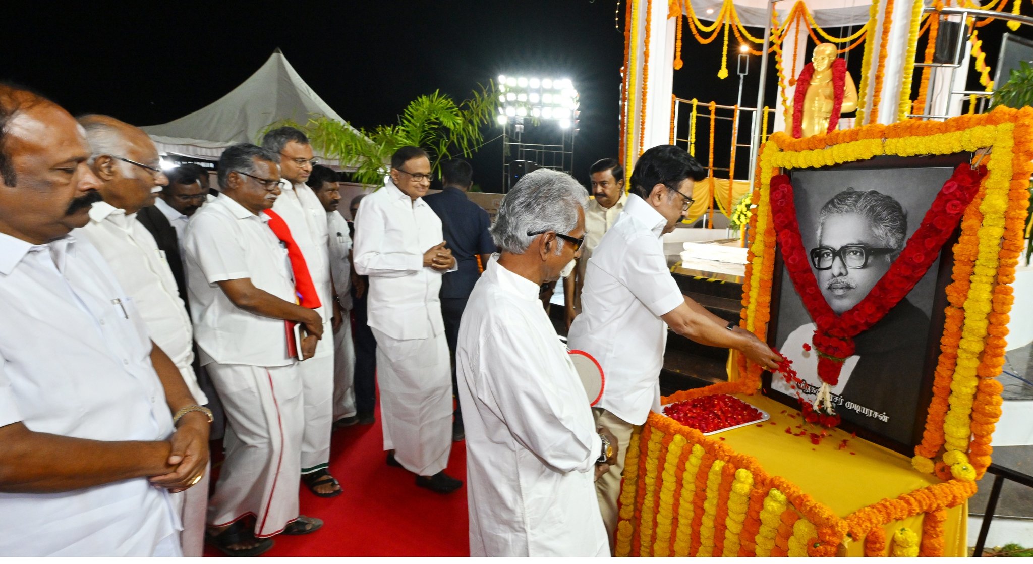 தமிழக முதலமைச்சர் மு க ஸ்டாலின் கவியரசர் முடியரசனார் சிலையை கழனி வாசலில் திறந்து வைத்தார்.