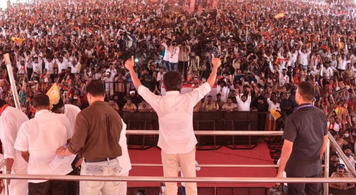 இன்று வேலூர் அகரம் சேரியில் நடந்த தமிழக வெற்றிக்காக தொண்டர்கள் சந்திப்பு நிகழ்வு நடந்தது. தனக்கான பேருந்துகளில் இன்று பேசிக் கொண்டிருந்த விஜய் இன்று பிரம்மாண்டமான பந்தல் மேடையில் நின்று மீண்டும் திமுக தான் தனக்கு எதிரி என்றும் தன்னை நண்பர் என்று சொல்லிக் கொள்ளும் முதலமைச்சர் தான் நடத்தும் பொதுக்கூட்டத்திற்கு மக்களை சந்தித்து நிகழ்ச்சிக்கு எந்த ஒரு நிகழ்வுக்கோ அனுமதி தராமல் பழிவாங்குவது தான் நட்பா என்கிற மாதிரியான கேள்விகளை முன் வைத்ததோடு வரும் தேர்தலில் தமிழக வெற்றி கழகம் ஆட்சியை கைப்பற்றும் என்றும் தெரிவித்ததோடு ஸ்டாலின் சார், தமிழகத்தை சூப்பர் ஸ்டார் மாநிலமாக இருப்பதாக சொல்கிறார். ஆனால் ,காமராஜர் காலத்தில் தான் தமிழகம் சூப்பர் ஸ்டார் மாநிலமாக இருந்தது .அண்ணா காலத்தில்தான் சூப்பர் ஸ்டார் மாநிலமாக இருந்தது. எம்ஜிஆர் காலத்தில்தான் சூப்பர் ஸ்டார் மாநிலமாக இருந்தது .ஆனால், இப்பொழுது வெறும் ஸ்டாண்ட் அப் காமெடி நிகழ்வாகத்தான் திமுக ஆட்சி செயல்பட்டுக் கொண்டிருக்கிறது என்றும் ஊழல் தான் மலிந்து கிடக்கிறதாகவும் தான் ஒரு ஊழல் அற்ற ஆட்சியை அமைக்க வேண்டும் என்று களத்தில் இறங்கியதால் தான் இந்த ஒரே ஒரு விஜய் எதிா்ப்பதற்கு அனைவரும் ஒன்றாக கூட்டணியில் சேர்ந்து கொண்டு எதிர்த்து கொண்டு இருக்கிறார்கள். நான் எதற்கும் பயப்படப்போவதில்லை. என் கூட்டணி மக்களோடு தான் என்கிற விதத்தில் பேசியதோடு தான் ஆட்சி அமைத்த உடன் பல்வேறு திட்டங்களை செயல்படுத்த போவதாகவும் தெரிவித்தார். அவர் பேசியதில் சில..