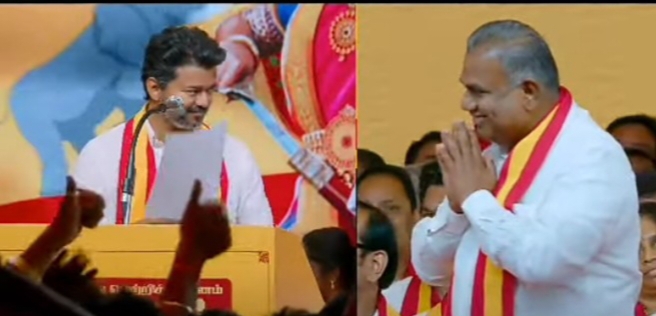 தமிழக வெற்றி கழகத்தின் வேட்பாளர் பட்டியலை கட்சி தலைவர் விஜய் அறிவித்தார். பெரம்பூரில் சோசப் விஜய் டி நகரில் ஆனந்த், வில்லிவாக்கத்தில் ஆதவ் அர்ச்சுனா, கோபிசெட்டிபாளையத்தில் செங்கோட்டையன் ,திருச்செங்கோட்டில் அருள்ராஜ், திருப்பரங்குன்றத்தில் நிர்மல் குமார், குமாரபாளையத்தில் விஜயலட்சுமி, திட்டக்குடி தனியில் ராஜசேகர் ,சைதாப்பேட்டையில் அருள் பிரகாசம், வால்பாறை தரன், எழும்பூரில் ராஜ்மோகன் ,லால்குடியில் கோபால் கிருஷ்ணன் ,திருப்பூர் சத்யபாமா, ஆயிரம் விளக்கு கே. சி. பிரபாகர், கொளத்தூரில் வி. எஸ். பாபு, பொன்னேரியில் டாக்டர் ரவி என பட்டியலை வாசித்துக் கொண்டிருக்கிறார்..