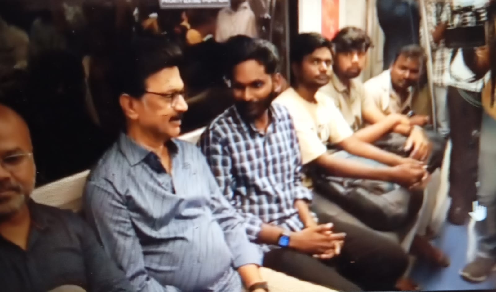 முதலமைச்சர் மு .க. ஸ்டாலின்சென்ட்ரல் மெட்ரோ ரயில் இருந்து தேனாம்பேட்டை வரை பயணம்-சக பயணிகளுடன் அமர்ந்து கலந்துரையாடினாா்.